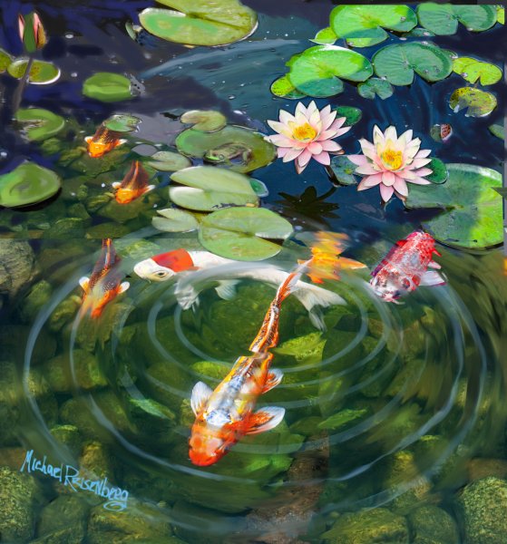 Mike’s paintings are beautiful! I love the koi painting and eagerly await the portray of my family.